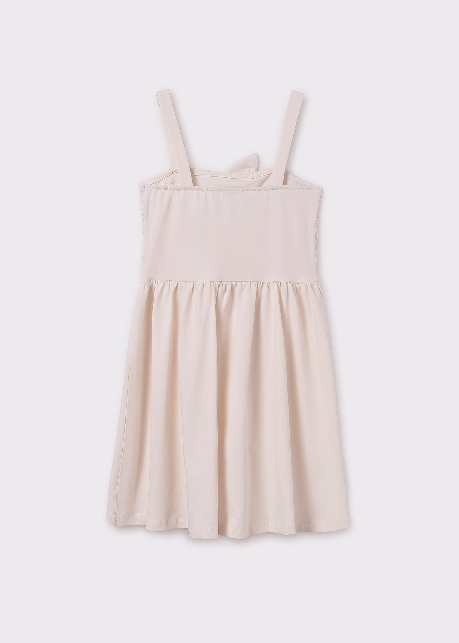 Vestido de tirantes para chica. Cinturilla elástica. Delantero fruncido. Elementos de adorno: aplique floral. Diseño liso.